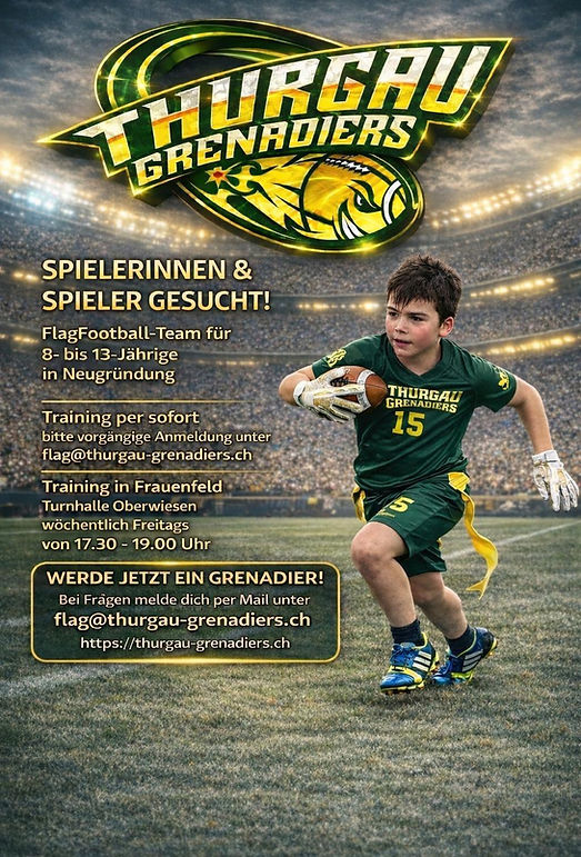 We are bringing American Football back to Thurgau after more than a 20-year absence. We are passionate coaches who love the sport and know that it's not just about X's and O's to have a great team. We are focused on teaching the basics, making practices challenging, yet fun, and building a community within the organization as well as outside in the community. We are looking for big, small, short, tall, stocky, nimble men, women, teens who want to take part in the team and also contribute to the fellowship on and off the field.